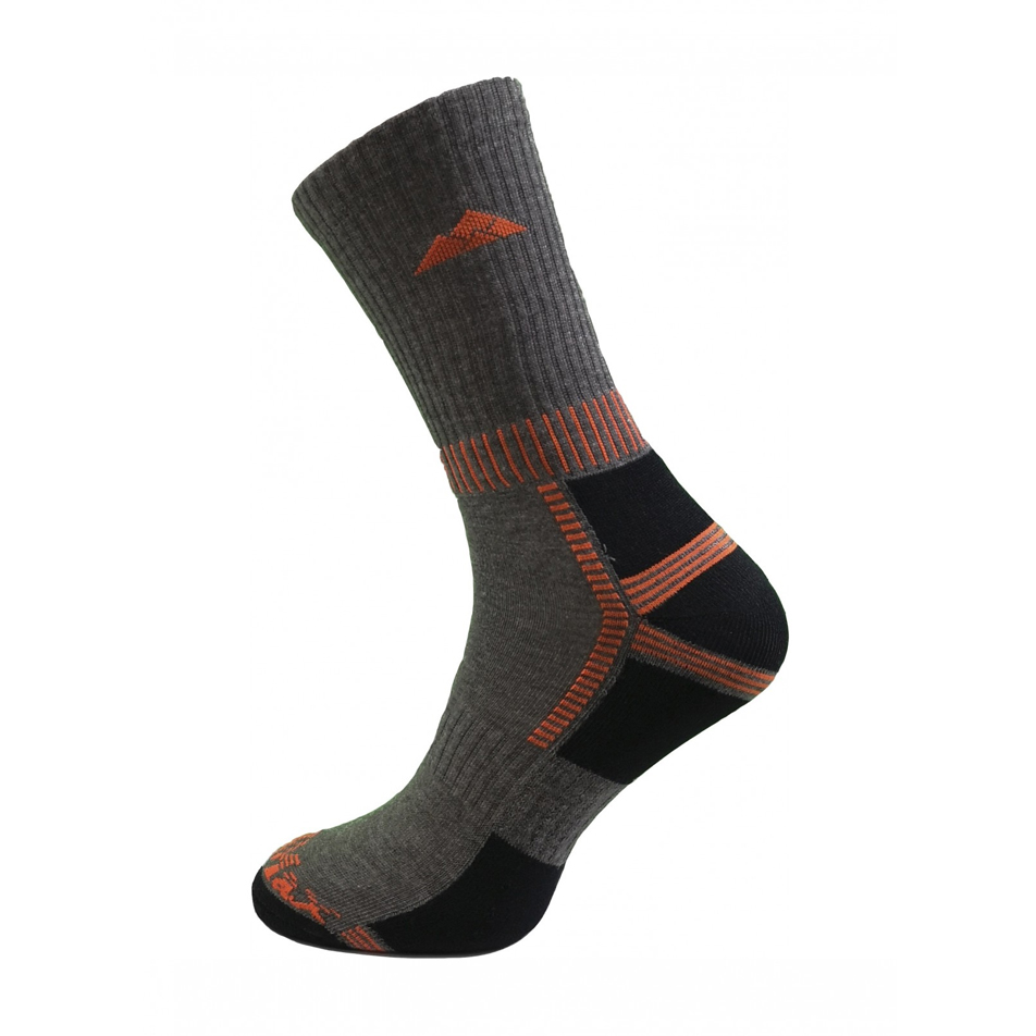 Calcetín con tejido Coolmax e hilo de Quitina de caña media, ausencia de costuras para mayor confort.